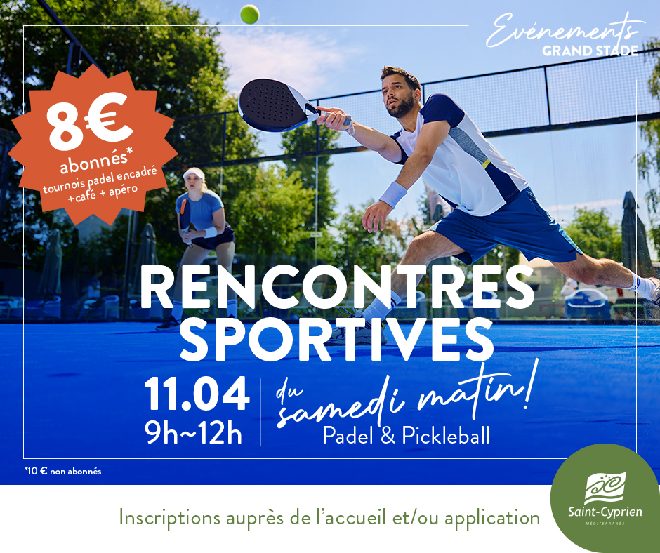 Venez passer un moment entre amis ou en famille autour d’une partie de pickleball et Padel, 𝐬𝐚𝐦𝐞𝐝𝐢 𝟏𝟏 𝐚𝐯𝐫𝐢𝐥, pour les rencontres sportives du samedi matin, à Grand Stade les Capellans ! 🔥